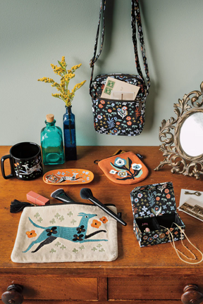 The ceramic Dogwood dish in its unique shape makes a convenient landing spot for keys, loose change, small jewelry, and paperclips. This design invites you to roam along the country road with a playful pup and a palette of rich rust, serene blue, and striking black conveying an unassuming beauty.